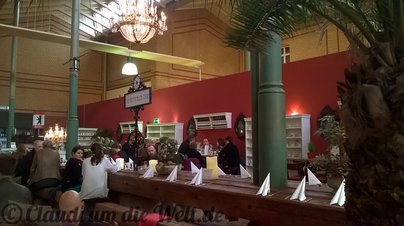 An der Markthalle betonen die Stadtführerinnen, dass diese im Gegensatz zur Schwester in Kreuzberg nicht-hipsterig ist. „Hier gehen wirklich nur Einheimische einkaufen und brunchen.“ Klingt immer gut, wer ist schon freiwillig gern Tourist? Zwischen rotierenden Hähnchenschenkeln (ich glaub, Broiler sagt dieser Teil der Stadt auch heute noch nicht :D) und dem fetten Hecht am Fischstand wird mir ein Burger mit Nutella und Zimt gereicht. Was soll ich sagen: Fleisch und Zimtjoghurt liebte ich dereinst in Syrien im Schawarma – kann nicht verkehrt sein. Und ja, die Nutellanote macht ihn nicht schlechter! Watt wia allet ham in Berlin, wa?!