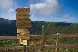 Über den Kraterrand der zwei Kilometer messenden Caldeira des Cabeço Gordo wabern endlos die Wolken. Den Blick nach drüben zum Pico versperrt die Wolkenwand eisern. Eine Weile schaue ich auf den niedlichen kleinen Krater im Krater, 400 Meter unter mir. Die grünen Hänge und die Sumpflandschaft im Talkessel der Caldera trügen. Der Cabeço Gordo ist seit über 200 Jahren nicht ausgebrochen. Aber er ist nur ein Teil einer Vulkankette und die ist nach wie vor aktiv. Faial ist dem Mittelatlantischen Rücken am nächsten gelegen, entsprechend aktiv ist die Erde hier.