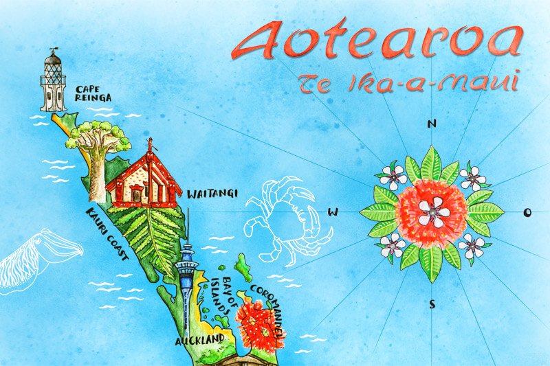 Auf dem Januar-Blatt meines Kalenders "Illustrierte Inseln" habe ich das verzeichnet, was ich auf Hawai'i gesehen habe und die Insel generell zu bieten hat.