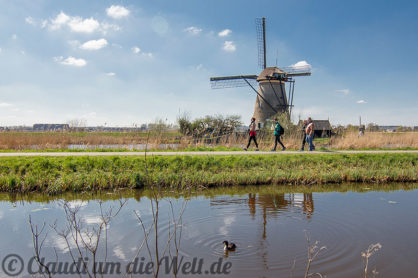 Man läuft auf dem Deich, zwischen zwei Kanälen und kommt per Brücke auch zur ein oder anderen Mühle direkt. Einige Mühlen drehen auch noch fleißig ihre Räder, dienen als lebendige Museen. Der Besucherstrom am Kinderdijk bewegt sich zu Fuß, per Fahrrad oder im Boot fort. Ich empfehle die Anfahrt per Auto und möglichst morgens oder gegen Abend. Zur Mittagszeit macht Fotografieren nicht so viel Spaß ;) Außerdem rate ich von der Bootsrundfahrt ab, wenn man gemütlich Zeit an den Windmühlen verbringen bzw. sie alle ablaufen oder gar besichtigen möchte. Der Ausflug ab Rotterdam dauert 4 Stunden, von denen man 1,5 Stunden Zeit hat, um den Kinderdijk abzugehen. Meiner Meinung nach, nicht genug ;)