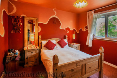 Am Ende des Weges angelangt, sucht sie nach dem Schloss der Feenkönigin. Doch nichts ist zu sehen. Sie kehrt um und hält an einer roten Telefonzelle, denn auch wenn sie das Pling nicht gehört hat, es hat definitiv etwas in der Luft geglitzert. Eine Fee lugt neben der Telefonzelle hervor. „Ist das der Fairy Glen?“, fragt die Weltenbummlerin. „Nein“, kichert die Fee. „Zum Fairy Glen musst du ganzen Weg zurück und dann weiter zum Wald hin wieder abbiegen“, erklärt sie grinsend den Weg.