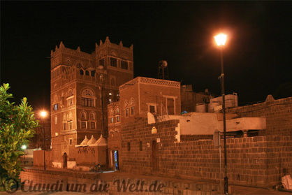 Fotos: Jemens Welterbe Sana’azugehöriger Blogpost >> Wie ich in der Hauptstadt des Jemen Weihrauch, Qat-Kauer und Lehmhäuser sahMarkttreiben auf dem Suq von Sana’aSana’a bei NachtStichworte: architektur, kultur, landschaft, Sanaa, Sehenswürdigkeit, staedte, Welterbe