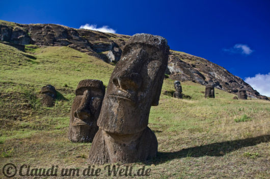 Es gibt 164 Zeremonialstätten mit Moais auf der Osterinsel, insgesamt stehen und liegen ca. 900 Steinfiguren auf Rapa Nui und um die alle mal zu sehen oder auch nur ein paar mehr als bisher bedarf es einer weiteren Erkundungsreise, oder was meint ihr? ;)