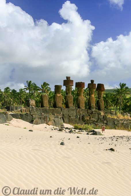 An der Nordküste befindet sich der einzige kleine Palmenhain der Osterinsel, am einzigen Sandstrand Anakena. Die Bucht ist zwar winzig, da sich aber die Besucher in Grenzen halten, ist man dennoch fast allein. An diesem Strand richtete man die sechs Moai des Ahu Nao Nao wieder auf. Sie sind vor allem so auffällig, weil sie fast alle ihren roten Hut tragen.